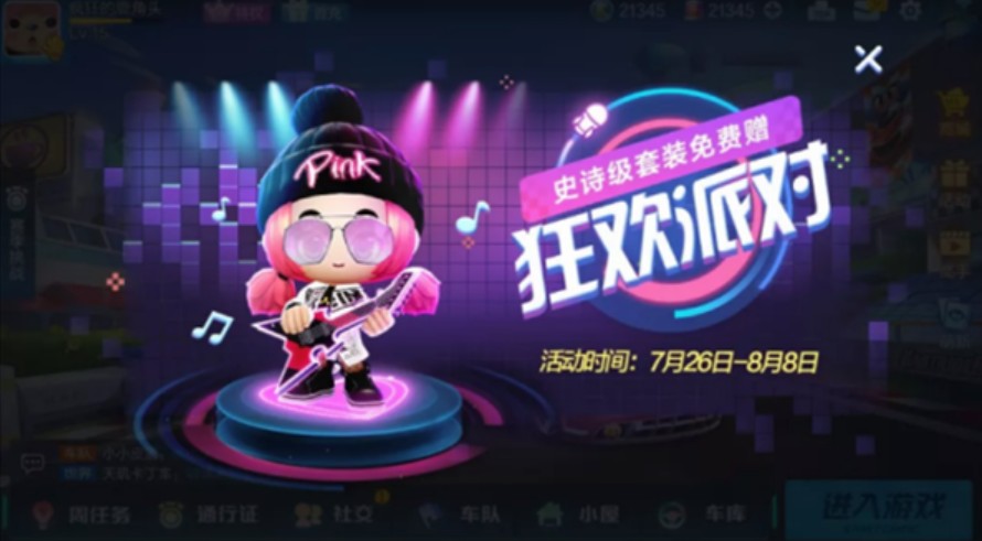 这个活动是在7月26日即将开启的,在活动期间会随机的掉落音符碎片,这个碎片收集的越多越好的,然后就进行免费抽奖的,满了10次就可以获得这个黑妞朋克装,其他的奖励也是可以全部的获取到的。
