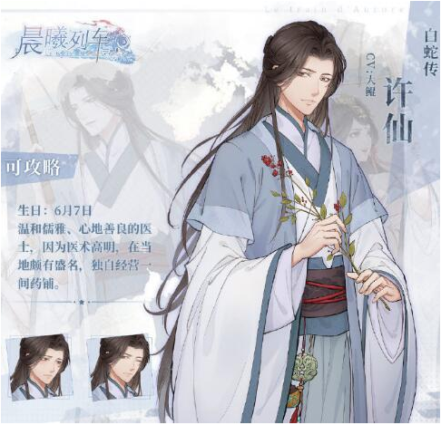 温和儒雅,心地善良,因为医术高明,在当地颇有盛名,独自经营一间药铺。