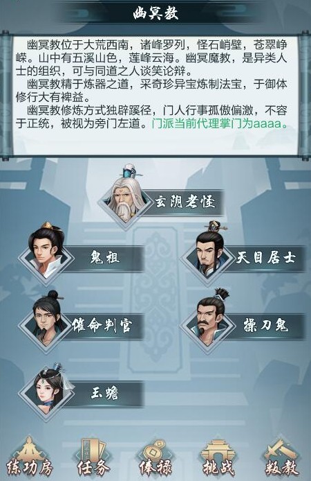 3、去门派里找掌教,请安、学习前两本功法,然后把工资领了。
