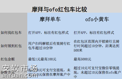 小编通过比较发现,尽管摩拜单车和ofo都推出了红包车但有些细微的差别。