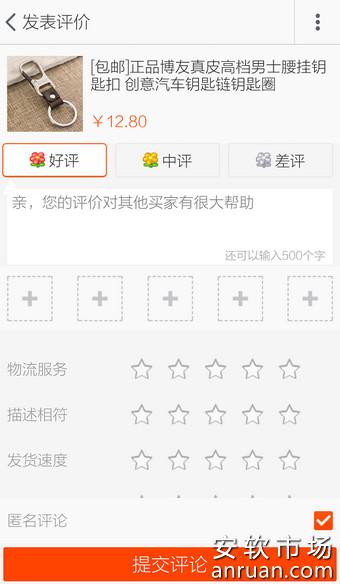 选择评价等级,给出评价内容,然后给星星,如果你不想让其他买家知道你的名字,勾选【匿名评论】