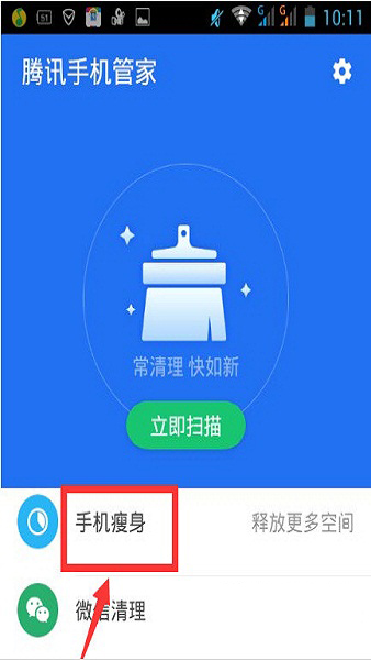 1、首先在手机管家的主页,点击【手机瘦身】。