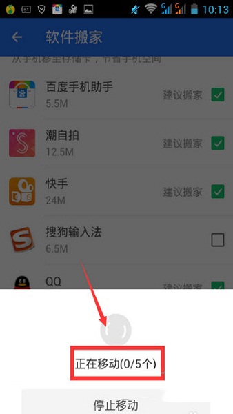 5、会看到软件正在移动,等待软件移动完就可以了,也可以停止移动。