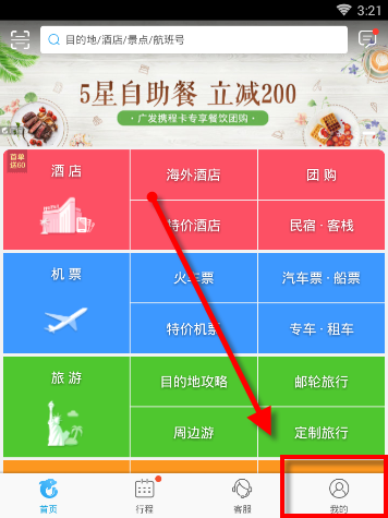 1)打开携程旅行APP,首先进入首页右下角处的【我的】,然后点击【全部订单】;(如下图)