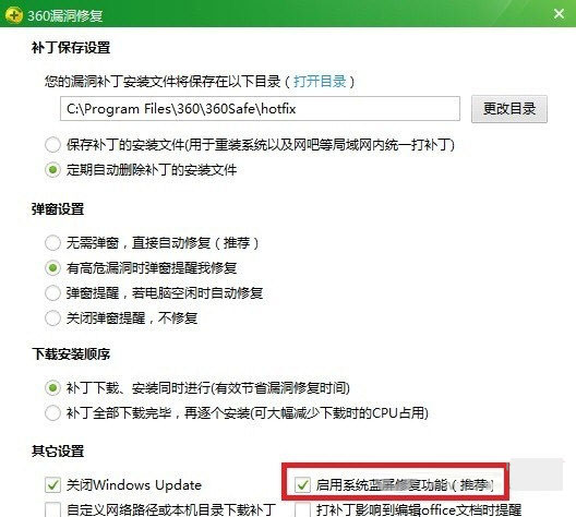3、之后你就会看到【启用系统蓝屏修复功能】的选项。