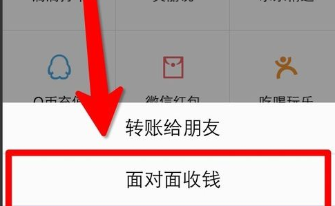 3.此时界面底部会弹出一个选项框窗口,我们找到页面中的“面对面转账”按钮,并点击进入下一步。