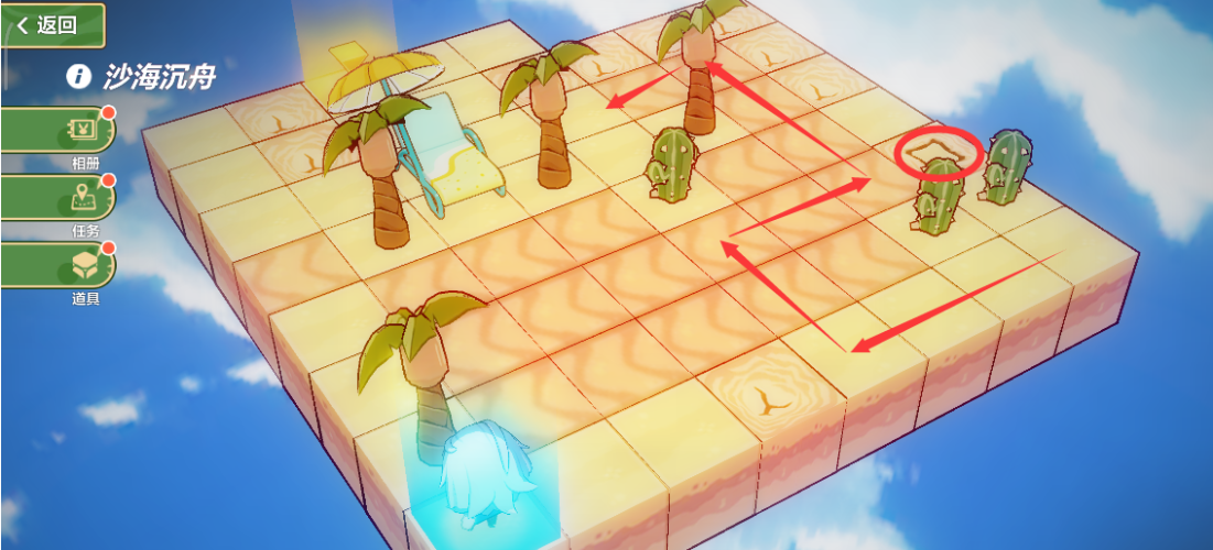 接着按照图示路线触发剧情,记得要去点红圈处的沙坑挖一下哦。