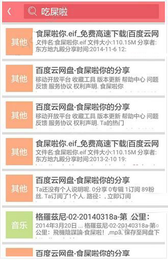 2.搜索之后你就会看到下面一排“食屎啦你”为题的内容,找到表情包点击一下保存到百度云就可以了。