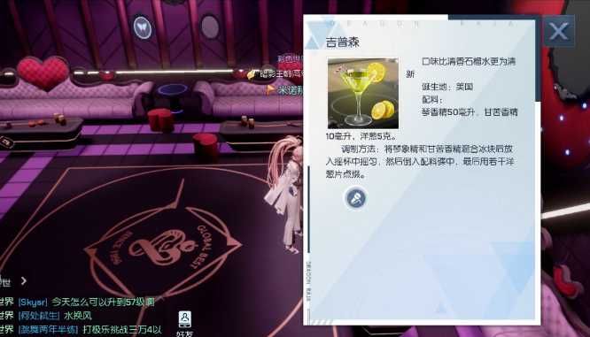 调制方法:将琴象精和甘苦香精混合冰块后放入杯中摇匀,然后倒入配料碟中,最后用若干洋葱片点缀。