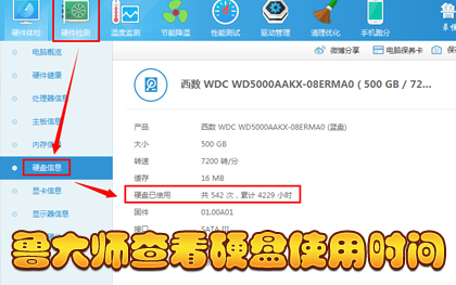 首先打开鲁大师检测电脑性能,然后点击硬件健康,第一个就是硬盘使用时间啦。