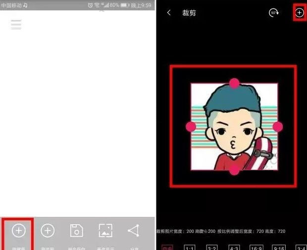 四、点击“预览图+”,选择正常小图下需要展示的微信头像的素材图。然后点击右上角的“+”,操作如下图。