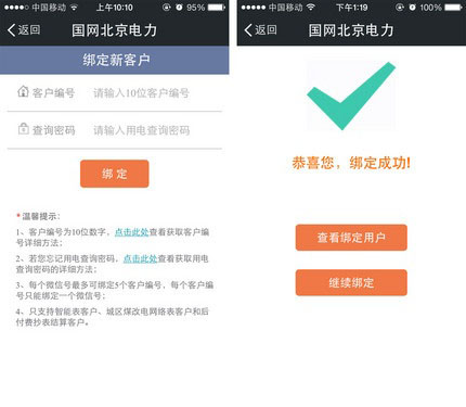 但是目前微信购电服务仅适用于智能表客户、城区煤改电网络表客户以及后付费抄表结算客户,如果您家的电表不在这三类中,那么将无法绑定户号也就无法买电了,不过大多数用户还是可以享受到这项服务的。