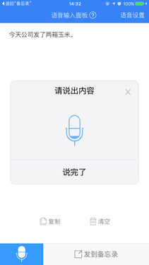 在语音输入之前,需开启麦克风权限,之后麦克风就默认自动开启了。说完之后别忘了点击“说完了”,不然的话麦克风就一直处于收音的状态。所有语音内容自动上屏,无需选择无需确认,而且小编试了多次,识别效果正确率极高,基本不用修改。