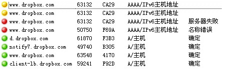以Dropbox软件为例,先关闭其他没用的客户端软件,打开DNSQuerySniffer,然后运行Dropbox,记录下其访问过的域名。使用一个Ping工具找出这个域名对应的ip地址。
