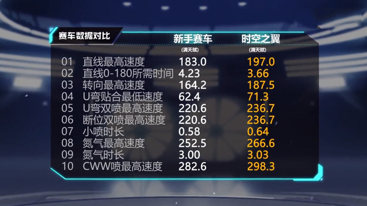 时空之翼的特性非常实用,在跳台较多的赛道中不但可以利用空喷和落地喷动力和时长的优势拉开与对手的距离,还有一定几率突破速度极限,更容易赶超对手,而且40%的触发概率也非常可观。