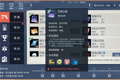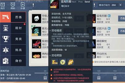 每日单人活动有王牌之旅(每天8次)、不思议历险(每日10次)、守夜人悬赏(每日12次)、急速狂飙(每日2次)、烤肉总动员(每日1次)、屠龙老何(每日2次),这些单人活动虽然看起来需要做的次数多,但每一次都非常简单,几分钟就可以完成一次,完成的次数越多也就意味着玩家可以获得的经验值越多,建议玩家先做完单人副本再进行日常副本;