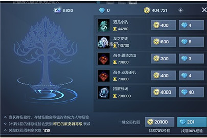 如果玩家前一天错过了某些副本活动,可以在活动界面中的补课界面进行经验找回,每周找回经验次数是105次,分为金币找回和钻石找回,其中金币可找回70%经验,钻石可找回90%经验,所以这里建议大家尽量亲自参加活动,不仅省钱,而且获得的经验也比找回要多;