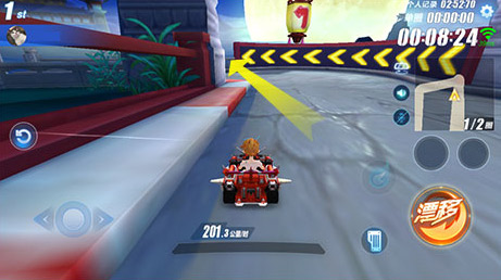 推荐保留一个氮气,出弯后使用wcw喷走左侧道路,期间可多次获得空喷及落地喷提速。