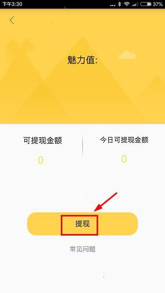 2、接着在魅力值页面,点击【提现】按钮进入;