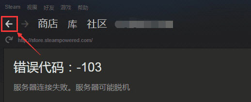 3、刷新后如果steam页面仍旧错误,尝试多次点击下图steam客户端中的箭头退回页面。