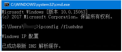 4、输入"ipconfig /flushdns", 成功后会有提示信息"已成功刷新 DNS 解析缓存"