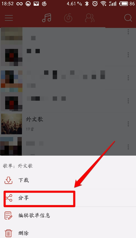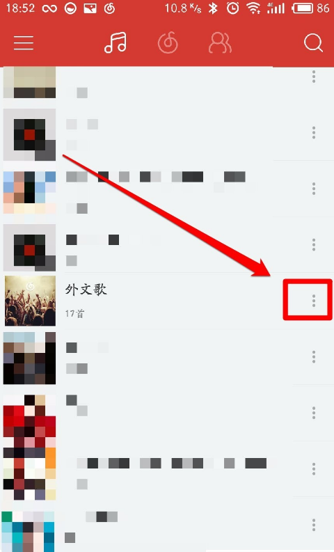 2、接着,在“音乐”界面中找到我们要导入虾米音乐的歌单,并点击其后面的“菜单”按钮,