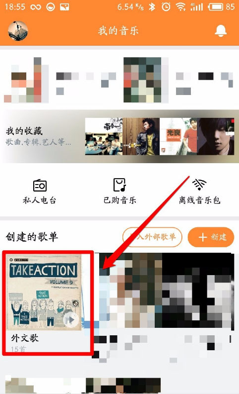 9、已经导入虾米音乐的歌单,我们可以在“我的音乐”中找到。