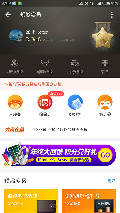 蚂蚁积分可以用来抽奖、周周乐、刮刮卡、游乐园
