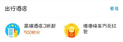 高端酒店3折起、滴滴快车红包、汽洗车券、共享单车骑行卡等,这些也是会不停的更新。