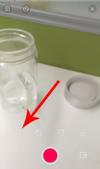 2、然后在拍摄页面点击下面的“音乐”图标。