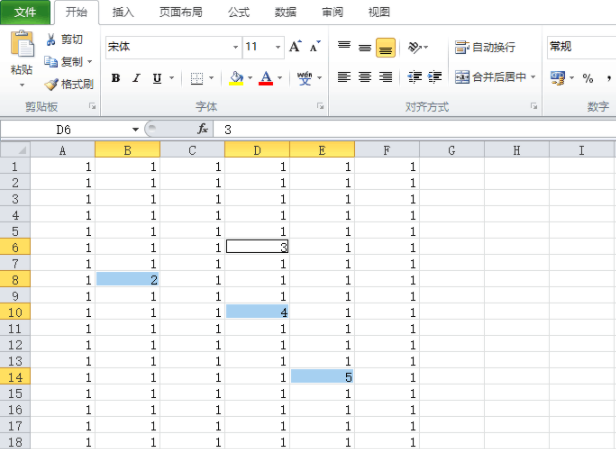 2、使用快捷键”Ctrl+⁄“快速筛选出与其他项不相同的数值,并选中;
