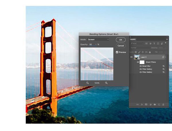 6、双击编辑滤镜混合选项,将特殊模糊效果的混合模式更改为滤色,并将不透明度降低到50%;