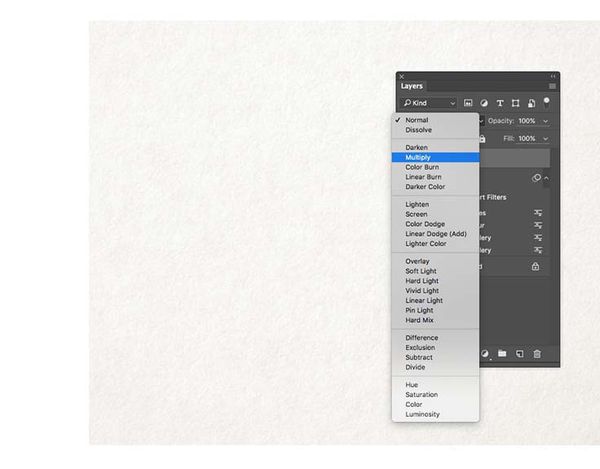 8、找到一个免费的纸张纹理,将纹理复制并粘贴到Photoshop文档中,并将其缩放到适合画布的大小,将混合模式更改为【正片叠底】;