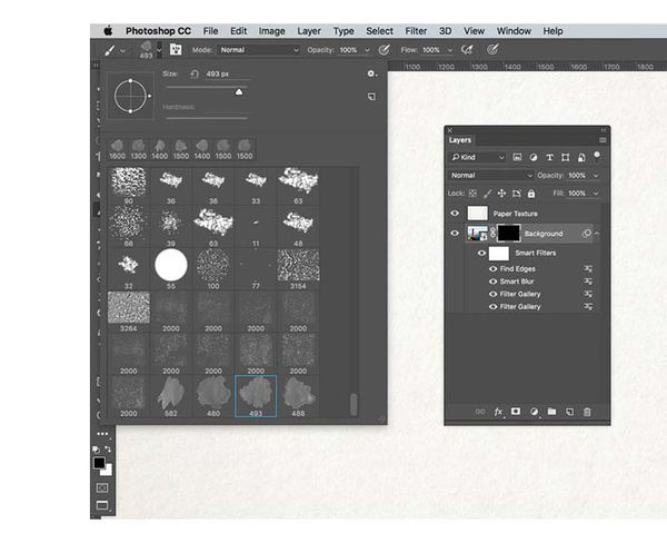 9、向背景图层添加图层蒙版,然后使用ALT + Backspace快捷方式用黑色填充蒙版,这将有效地擦除整个照片,点击画笔工具,选择一个水彩画笔;