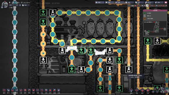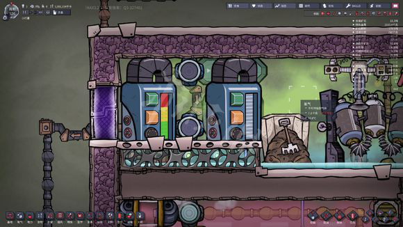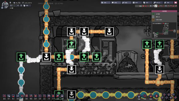 然后通过管道桥的绿口将多余的水优先用掉,当管道桥绿口的水流用完后。又会激活信号。(我们已经开始使用5吨的储备用水,需要制作一些低温净水了)