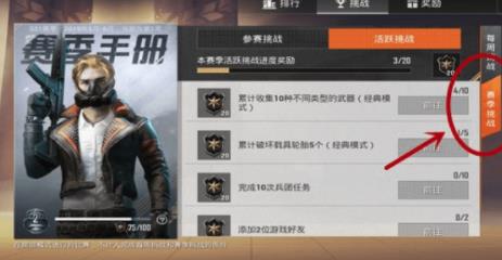 其次是每周挑战任务,持续时间一周,多个任务,我们在游戏的情况下看先查看每周的挑战任务,在游戏的过程中留个心眼,同时可以迅速的完成任务。比如在海岛地图游戏跳伞两次并且尽量选择P城的屋顶作为着陆点,通敌在游戏的过程中破坏载具轮胎,尽量猥琐挺近前三名,就这样非常简单的进行游戏就可以迅速的完成四个任务。