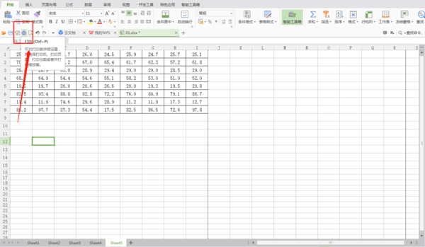 1、打开表格,点击【打印】;