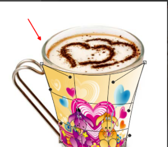 3、将这个图像的四个角锚点移动到杯子的边缘上,让图像和杯子的边缘对齐,慢慢的来拖动这个图像的锚点对齐;