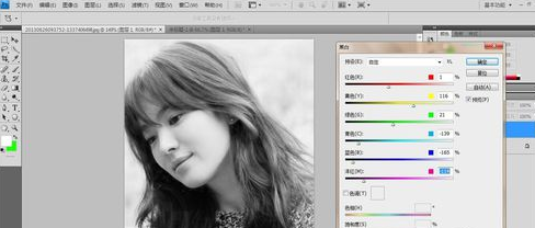 2、复制图层,然后点击“图像”、“调整”、“黑白命令”。