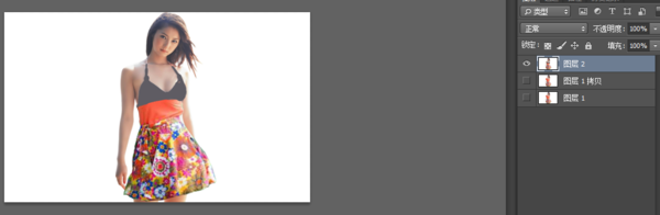1、我们需要使用两张图片,一张是有衣服的,一张是泳装。打开有衣服的图片,复制图层。