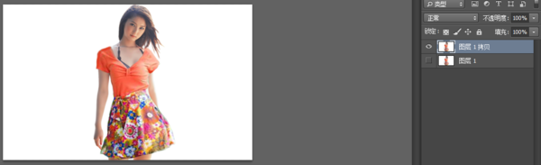 1、打开图片,使用ctrl+j复制一个图层。但是我们还需要准备一张衣服比较少的图片哦!
