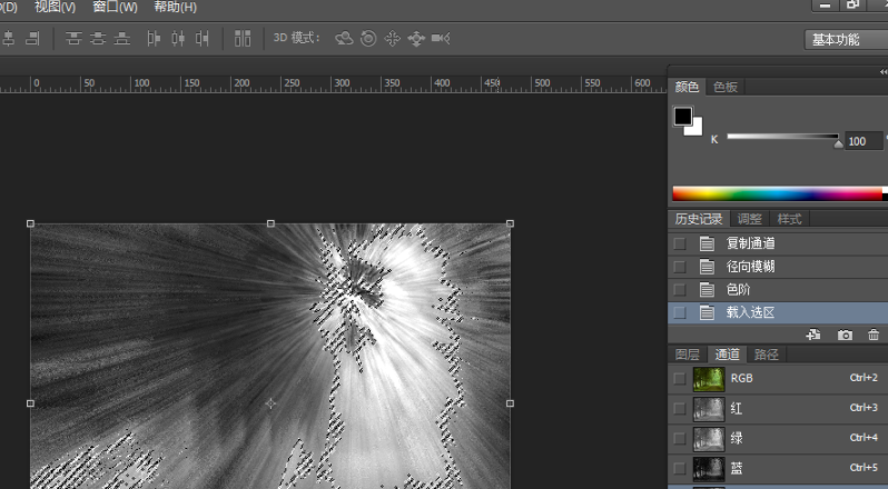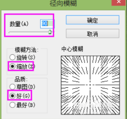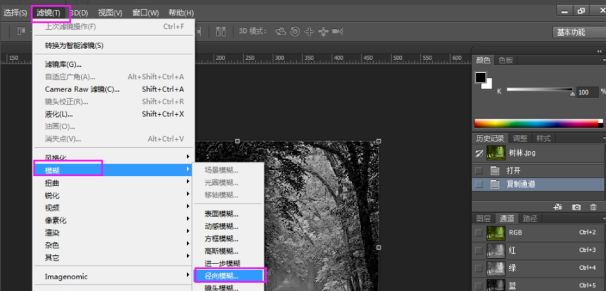 3、选择蓝通道,依次点击【滤镜】-【模糊】-【径向模糊】,设置好相关数值;