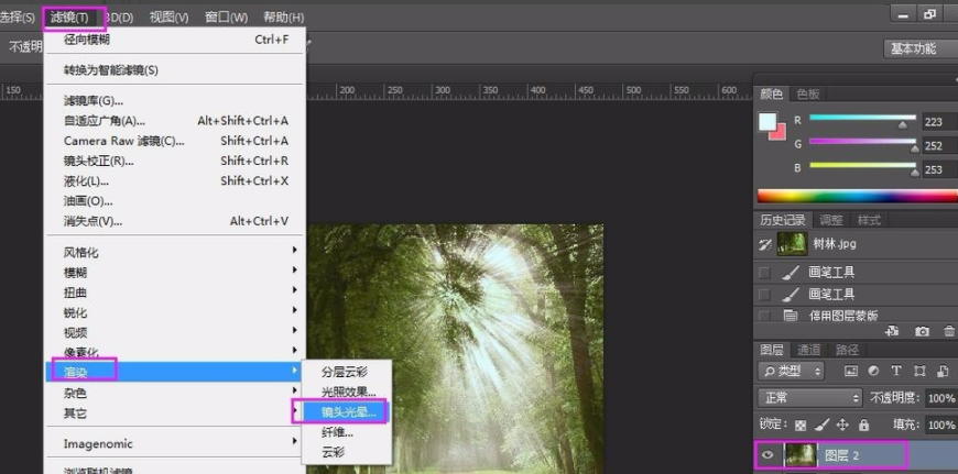 8、依次点击【滤镜】-【渲染】-【镜头光晕】就可以了。