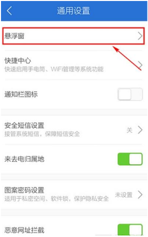 3、进入通用设置之后,在出现的8个功能中点击选择最上面的【悬浮窗】选项;