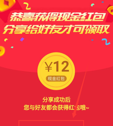 2.点击后打开如下分享提示页,这时可以点击窗口中的“分享领红包”按钮,点击它进行分享操作。