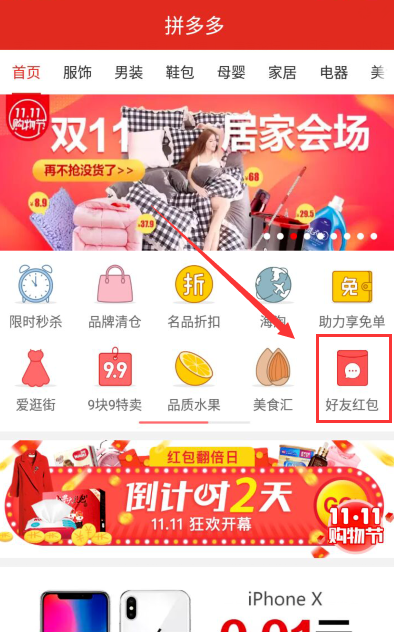 1.打开并登陆拼多多好友帐号,登陆成功后在右侧找到并点击“好友红包”按钮,点击它进行邀请好友答题操作。