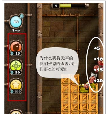 道具也是蜗牛竞速中比较新颖的玩法,利用道具将蜗牛杀死也可以获得一定的分数,但是并没有直接消除箱子获得的分数多。