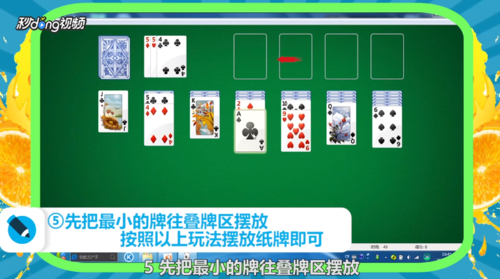 先把最小的牌往叠牌区摆放,按照以上玩法摆放纸牌即可。