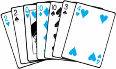 游戏按照这种方式从左边的玩家继续。只要您收全了相同点数的所有四张牌(套牌),就应该向其他玩家亮出该套牌,然后将它们合成一摞放在您旁边。