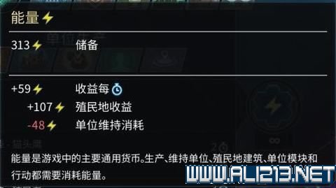 你所拥有的各种单位每回合也会消耗能量作为维持费用。